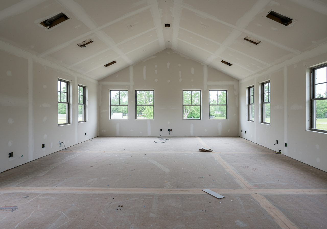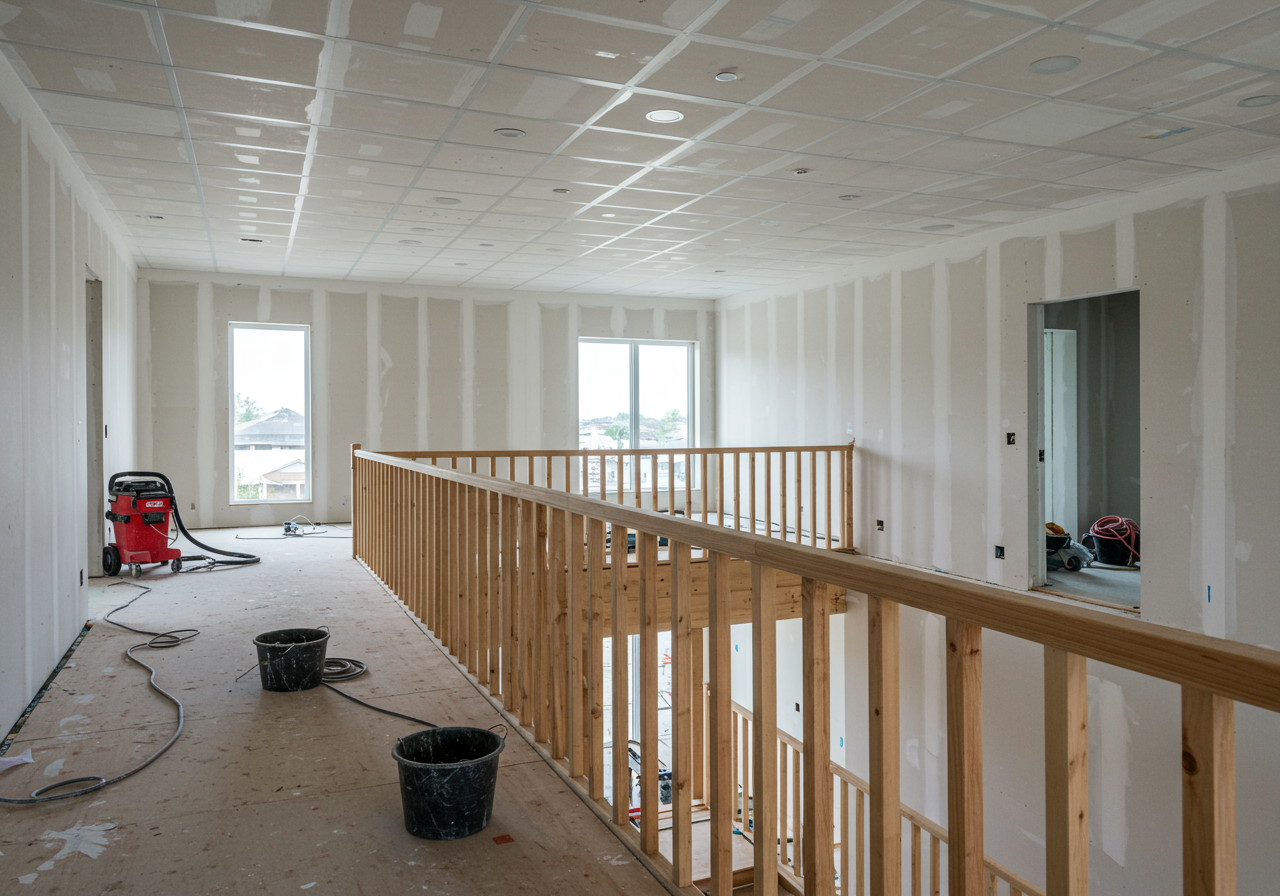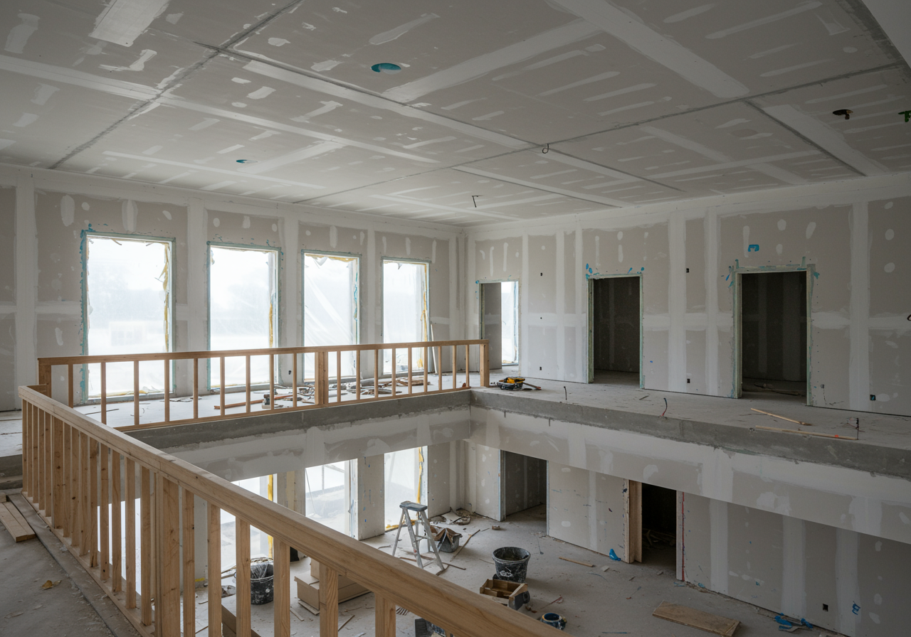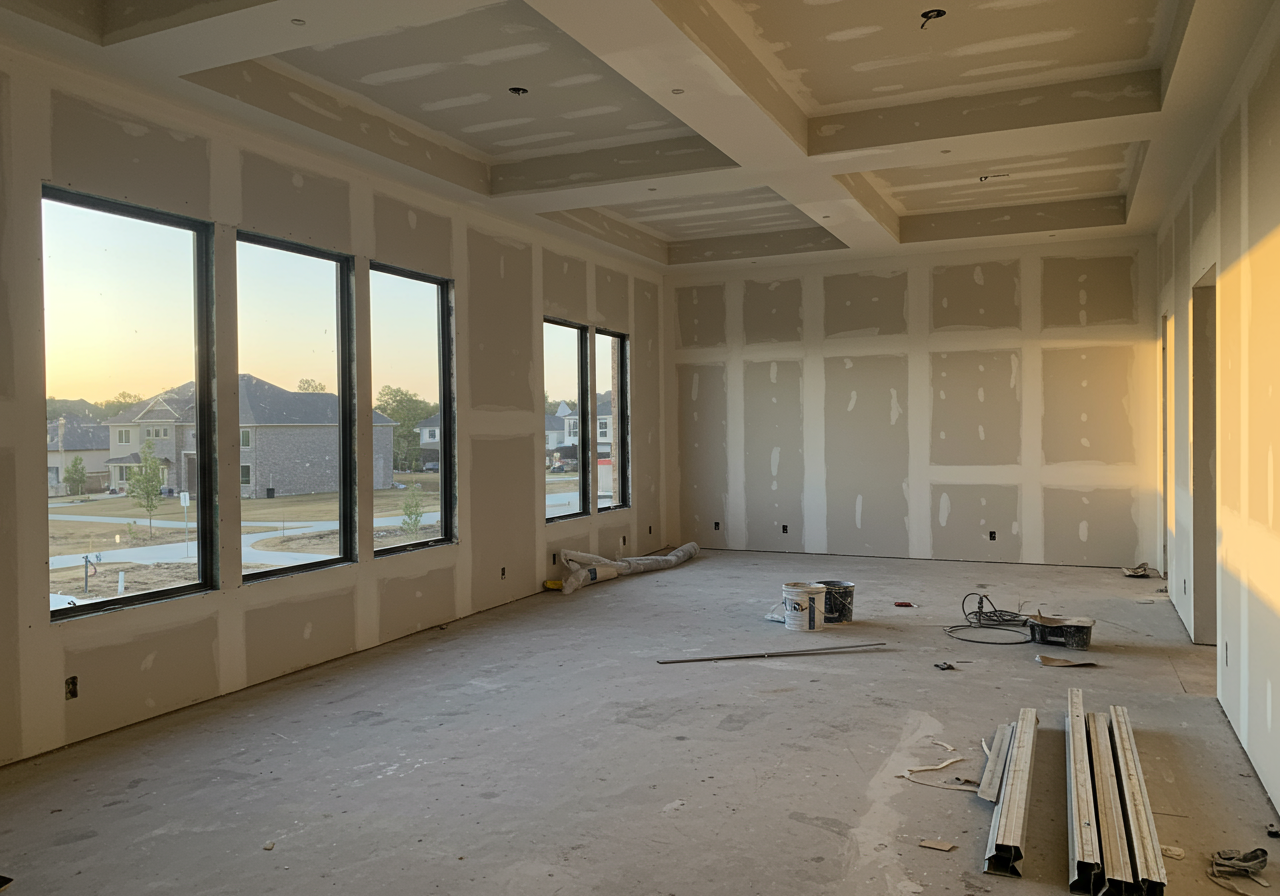 Inside the residence, newly installed sheetrock defines living spaces that promise both functionality and style. The careful placement of walls creates an intuitive flow throughout the home, setting the stage for bright, open interiors. Outside, skilled craftsmen apply brick detailing, adding warmth and character to the modern exterior while ensuring lasting durability.