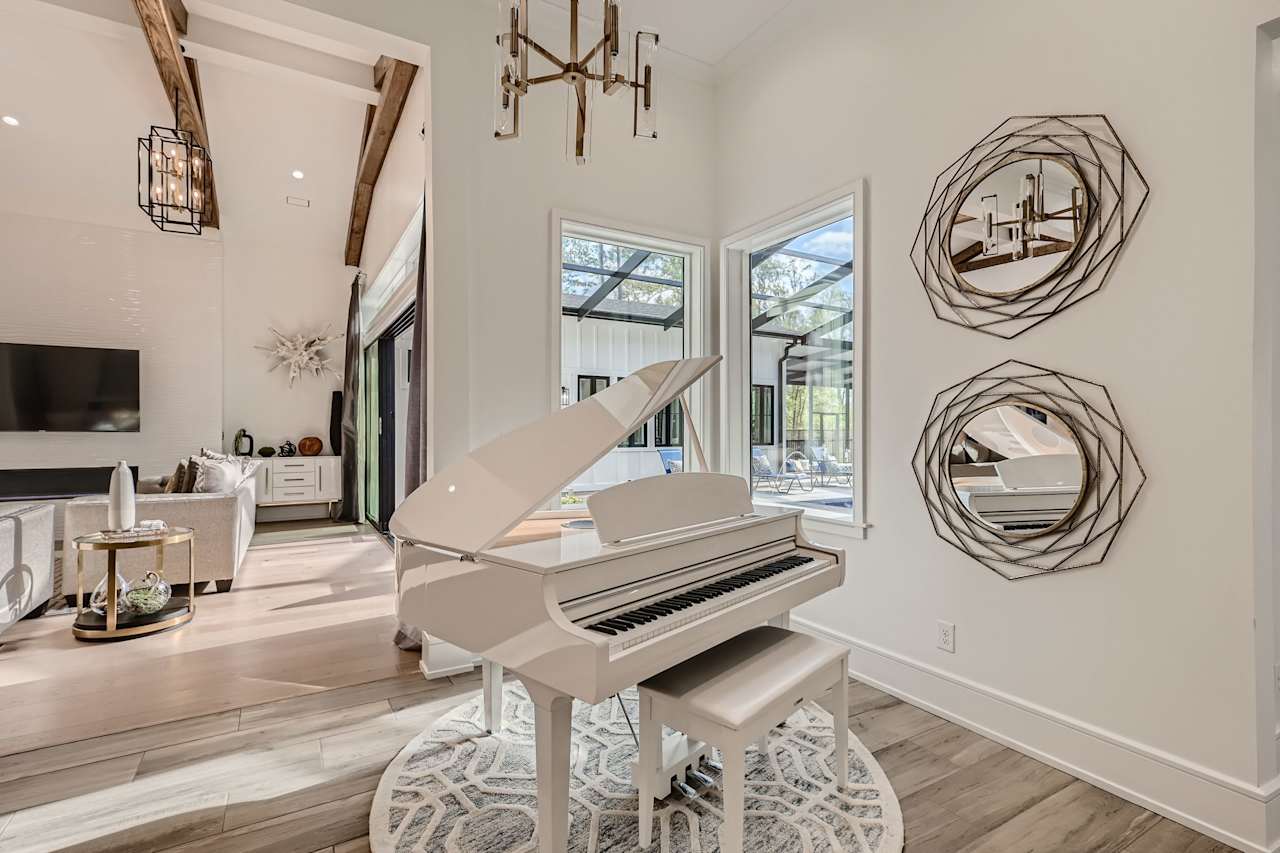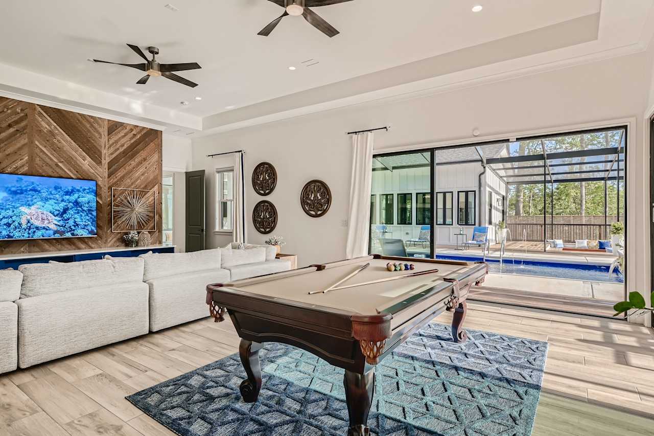 The property has an atmosphere reminiscent of an issue of Architectural Digest thanks to the stunning accent walls, magnificent lighting fixtures, and new, European equipment. There is no more awkward transition between the indoors and outdoors thanks to glass pocket doors. The outside living area is complete with a beautiful saltwater pool, a stone spa with a waterfall, separate sunken seating with a fire pit, a dining area that seats eight, and a fully equipped kitchen under a lanai. There is plenty of room for a large gathering or a quiet evening for two to enjoy the outdoors together.