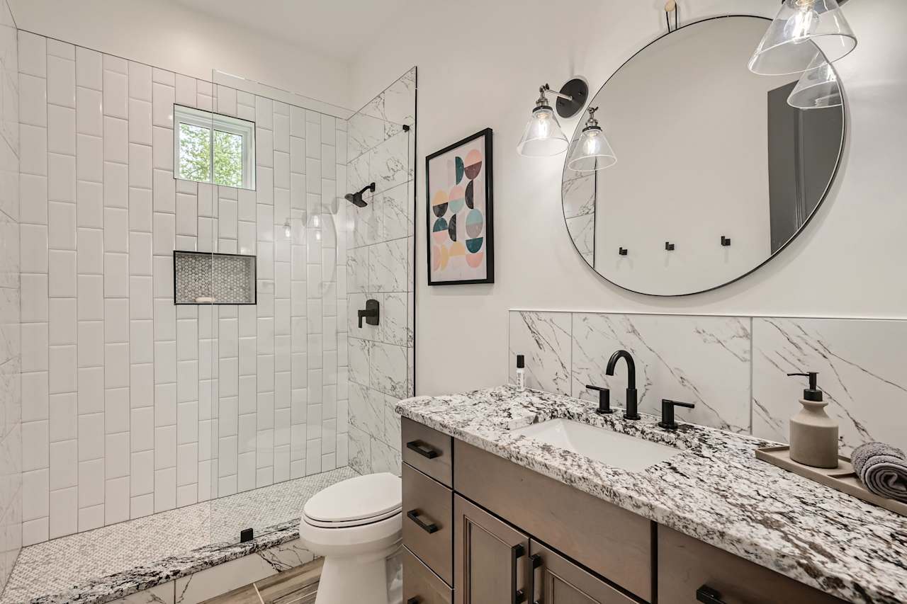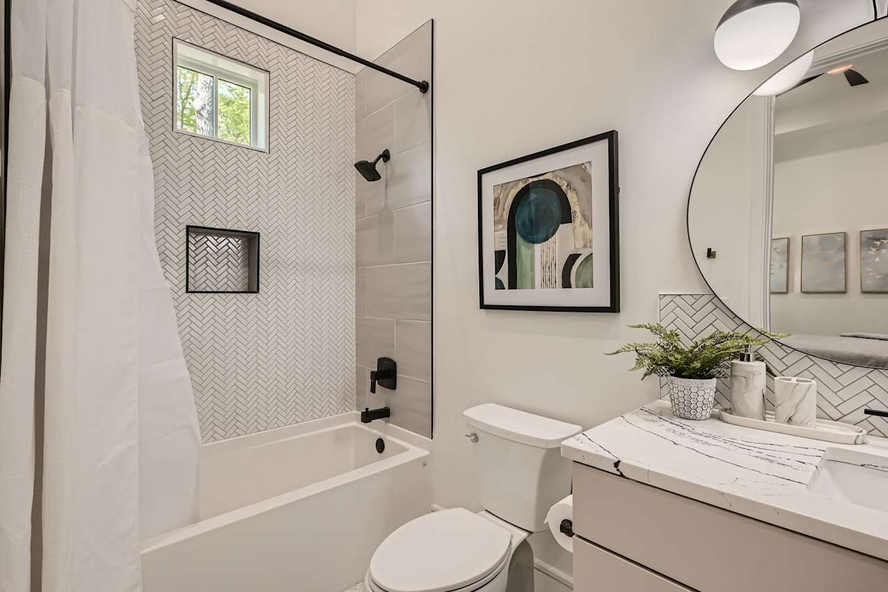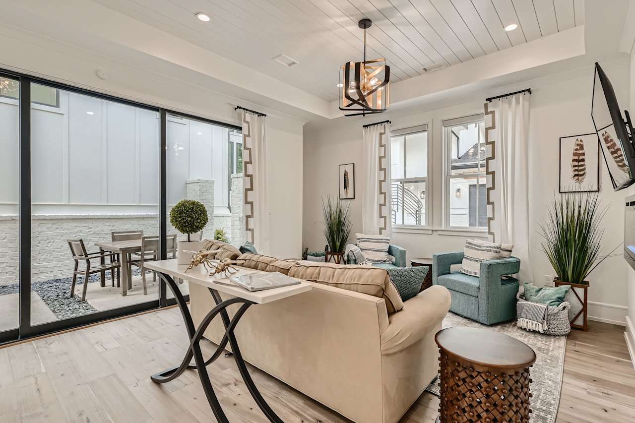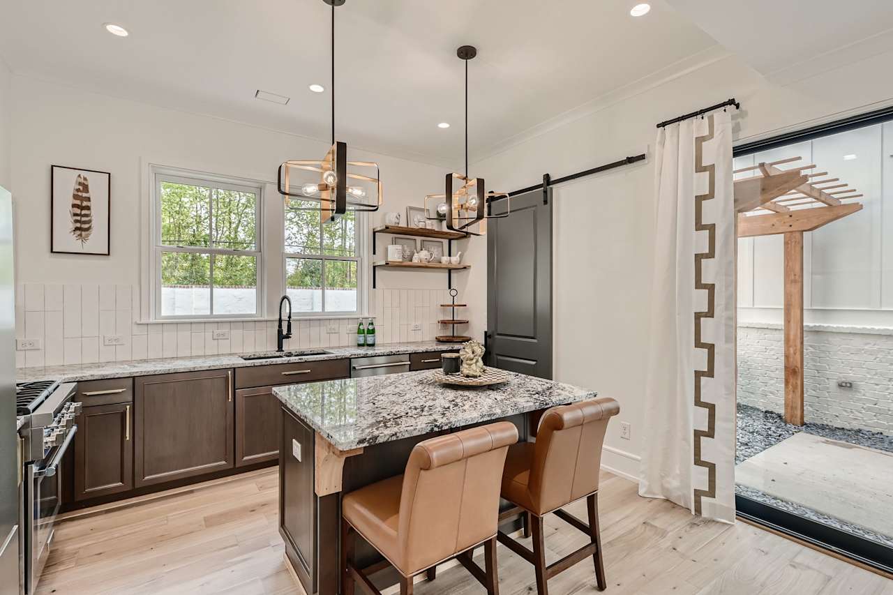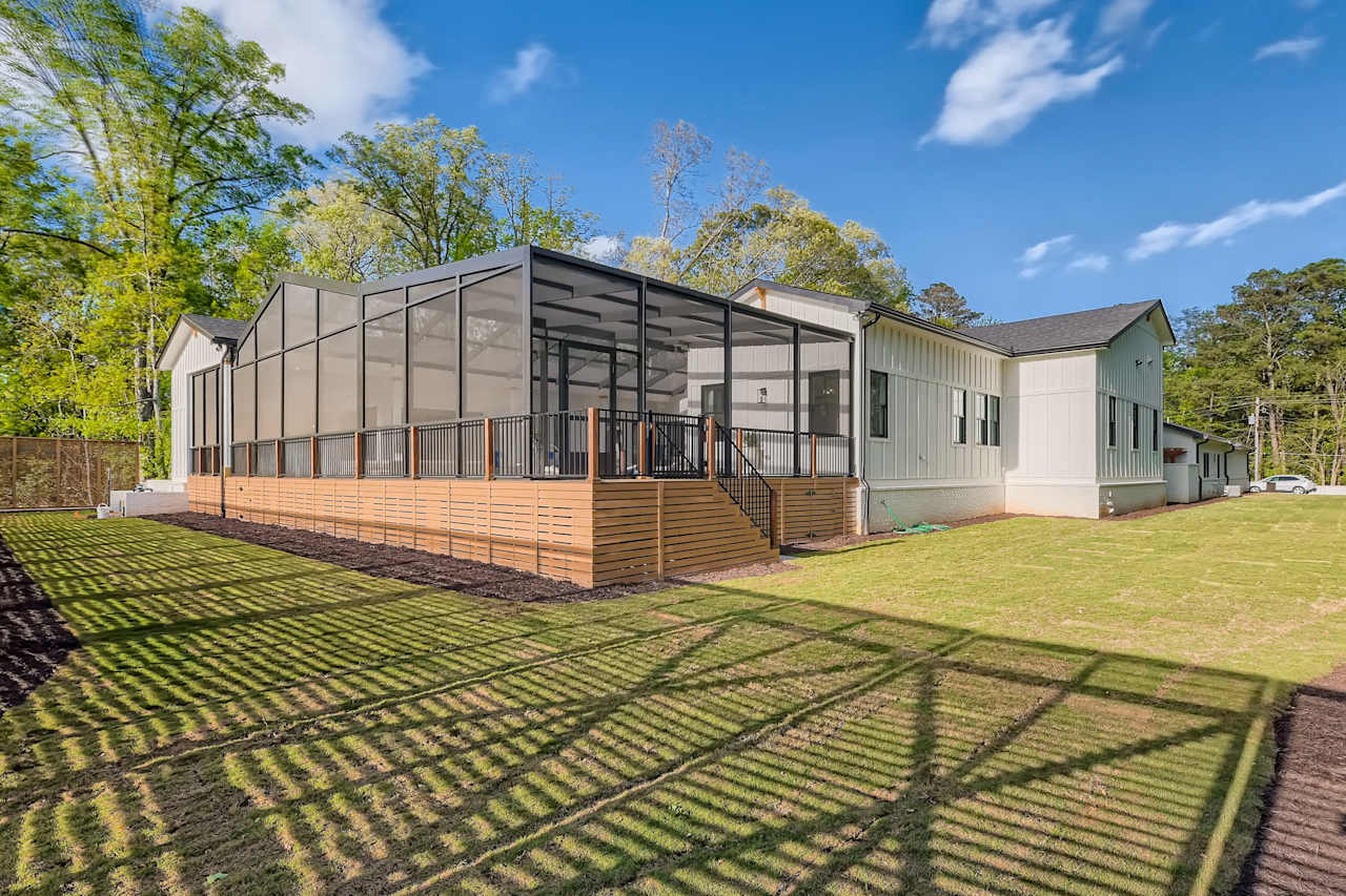 There is also a two-car garage, a private New Orleans-style courtyard, and a guest cottage with two bedrooms and a full kitchen. The property’s 12-foot fence and proximity to a forested area make it an ideal getaway from the hustle and bustle of daily life. Approximately ten to fifteen minutes from the heart of Atlanta and the Hartsfield International Airport.