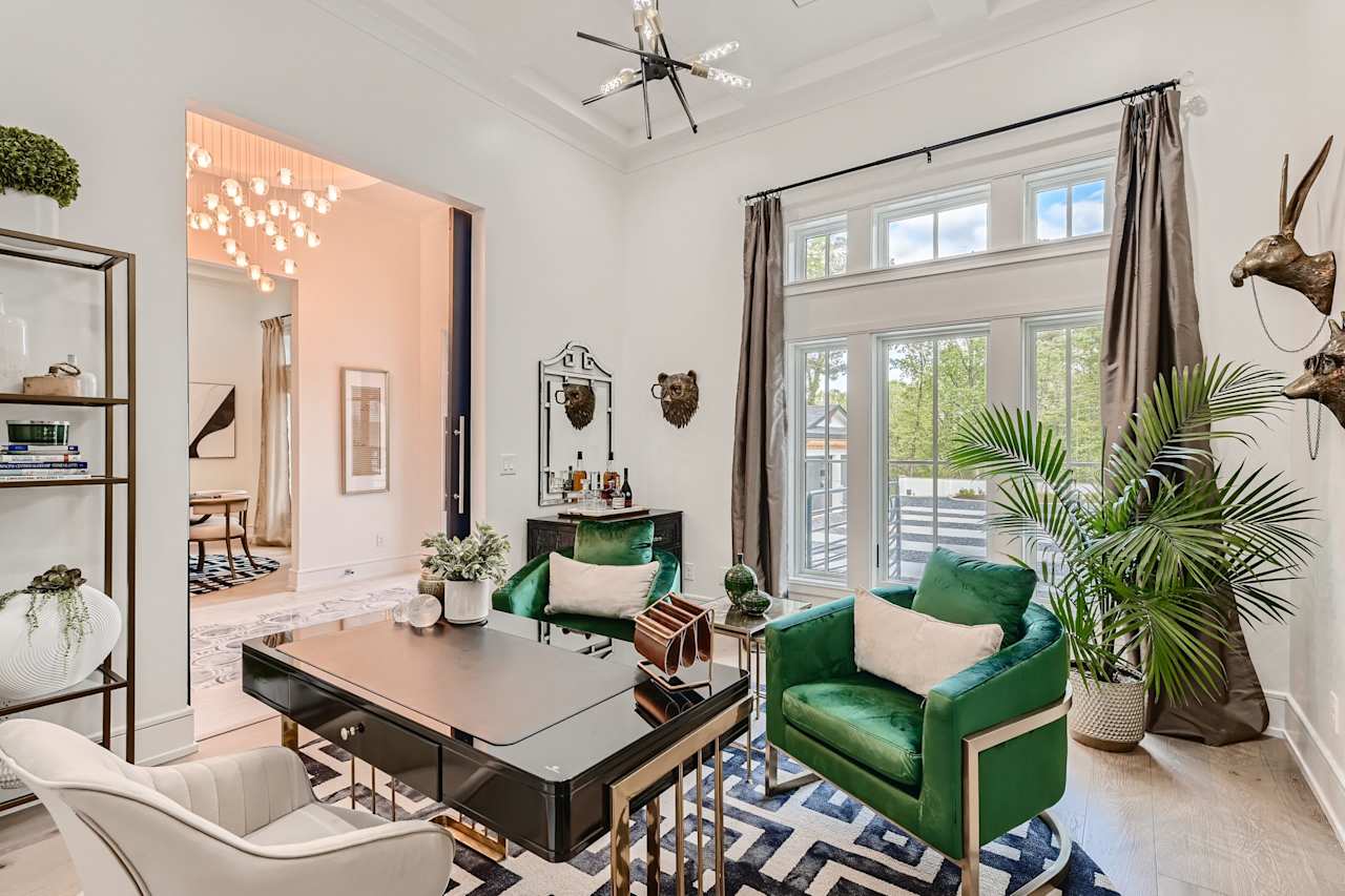 From the luxurious foyer, designed with steel and glass double doors leading to an awe-inspiring view of the Atlanta skyline beyond the trees of winter, overlooking a 270-acre private woodland paradise that offers beautiful outdoor activities and breathtaking views.